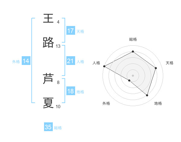 王路 芦夏さんを姓名の画数から五運を鑑定