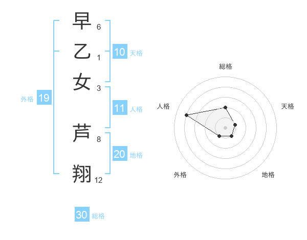 早乙女 芦翔さんを姓名の画数から五運を鑑定