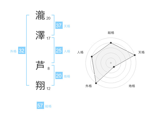 瀧澤 芦翔さんを姓名の画数から五運を鑑定