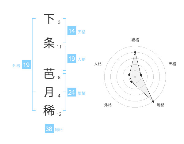 下条 芭月稀さんを姓名の画数から五運を鑑定