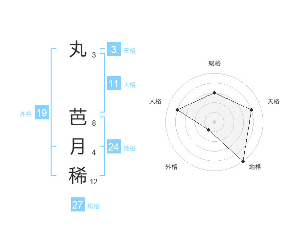 丸 芭月稀さんを姓名の画数から五運を鑑定