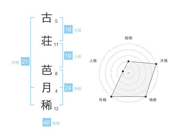 古荘 芭月稀さんの地格は24画の5点