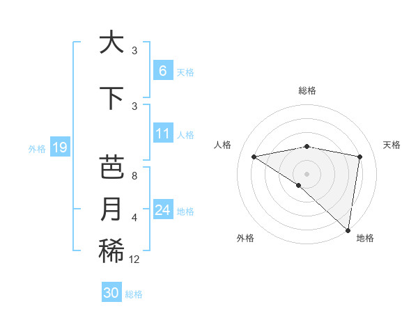 大下 芭月稀さんの総格は30画の2点!