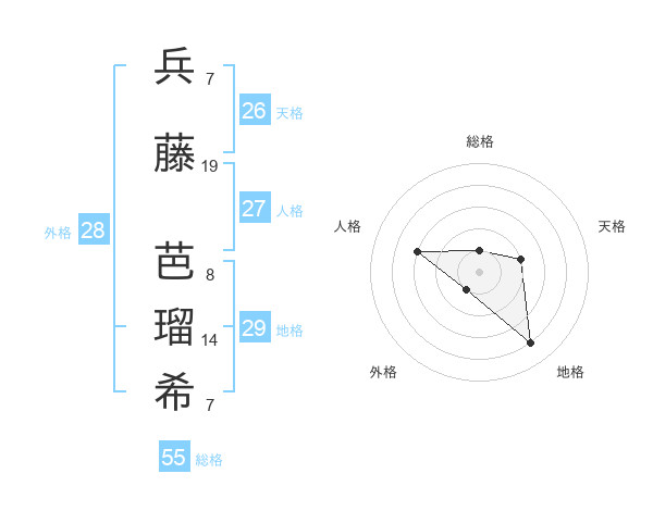 兵藤 芭瑠希さんを姓名の画数から五運を鑑定