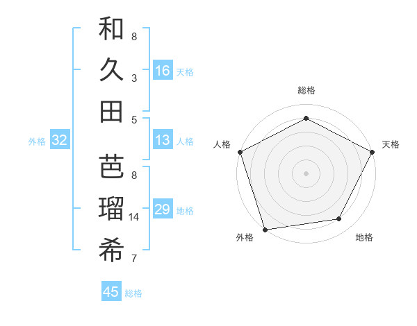 和久田 芭瑠希さんの天格は16画の5点!
