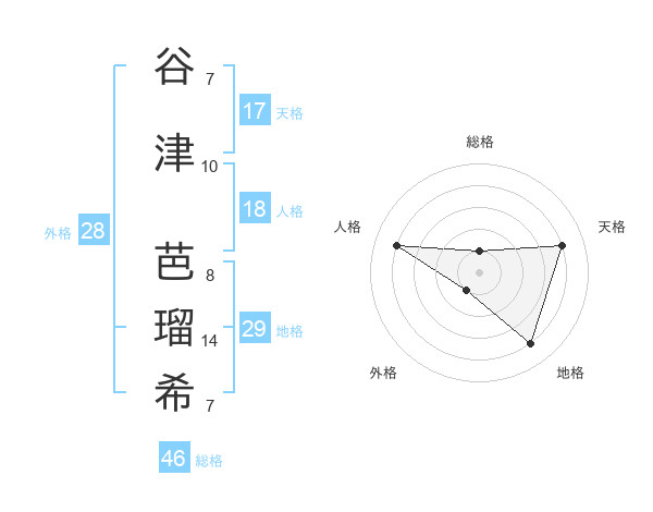 谷津 芭瑠希さんを姓名の画数から五運を鑑定
