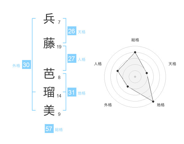 兵藤 芭瑠美さんを姓名の画数から五運を鑑定