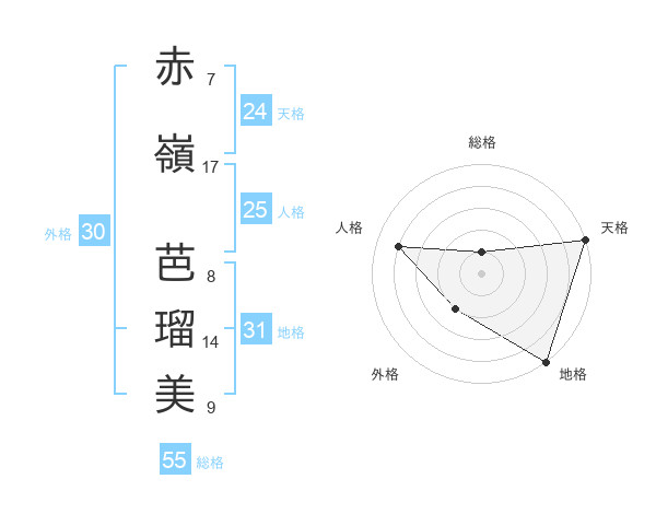 赤嶺 芭瑠美さんの天格は24画の5点!