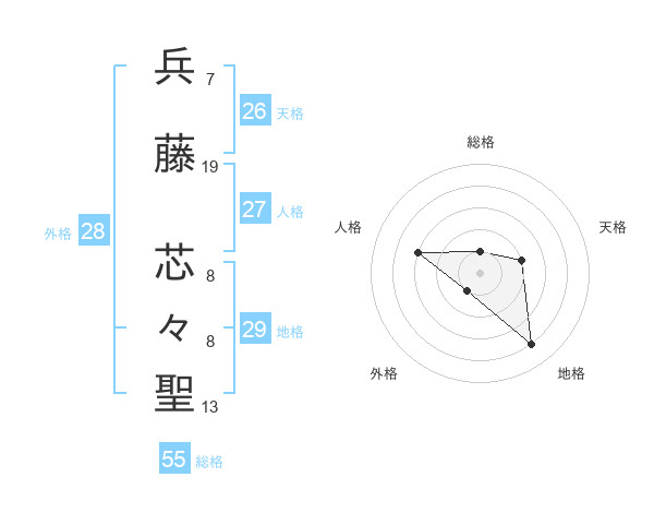 兵藤 芯々聖さんを姓名の画数から五運を鑑定