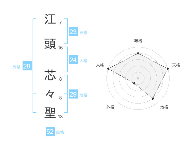 江頭 芯々聖さんを姓名の画数から五運を鑑定