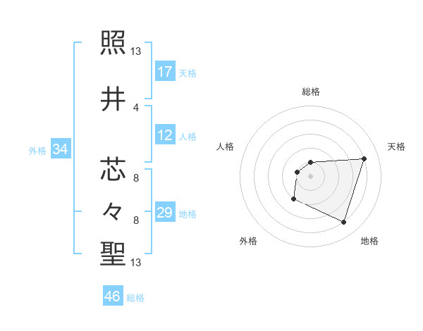 照井 芯々聖さんの天格は17画の4点!