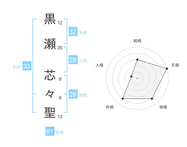 黒瀬 芯々聖さんを姓名の画数から五運を鑑定