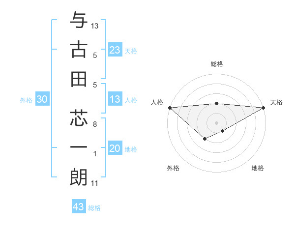 与古田 芯一朗さんを姓名の画数から五運を鑑定