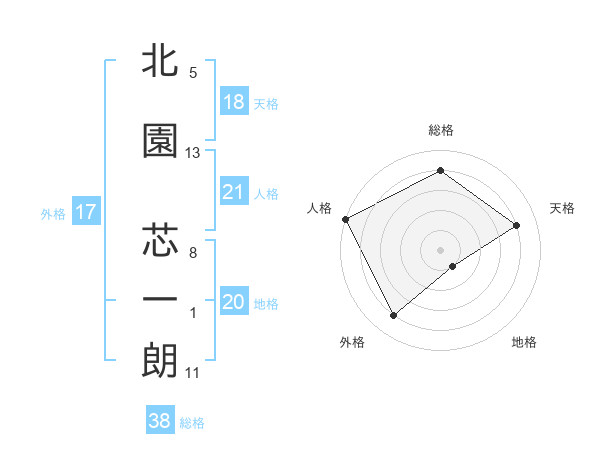 北園 芯一朗さんを姓名の画数から五運を鑑定