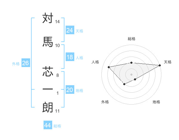 対馬 芯一朗さんを姓名の画数から五運を鑑定