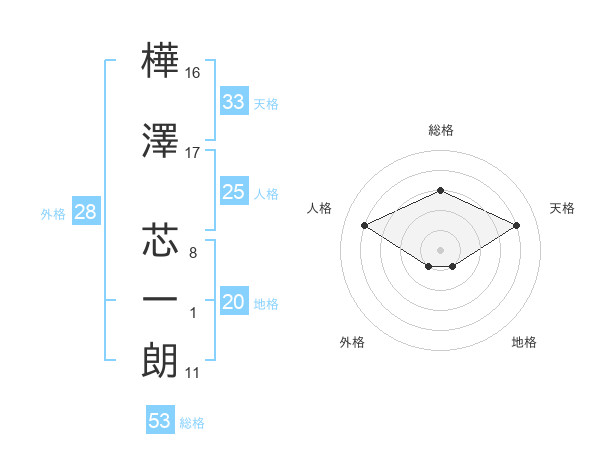 樺澤 芯一朗さんを姓名の画数から五運を鑑定