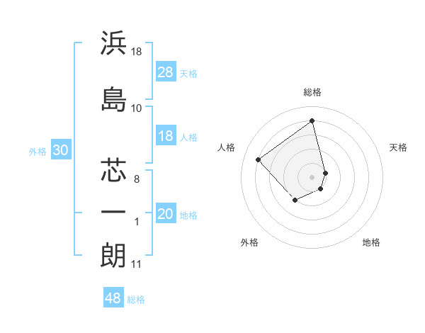 浜島 芯一朗さんの天格は28画の1点
