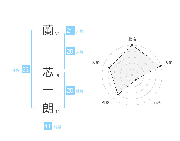 蘭 芯一朗さんの天格は21画の5点!