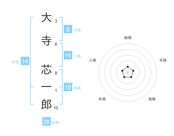 大寺 芯一郎さんを姓名の画数から五運を鑑定