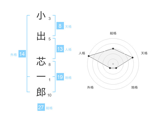 小出 芯一郎さんを姓名の画数から五運を鑑定