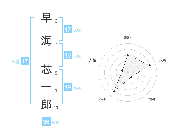 早海 芯一郎さんを姓名の画数から五運を鑑定