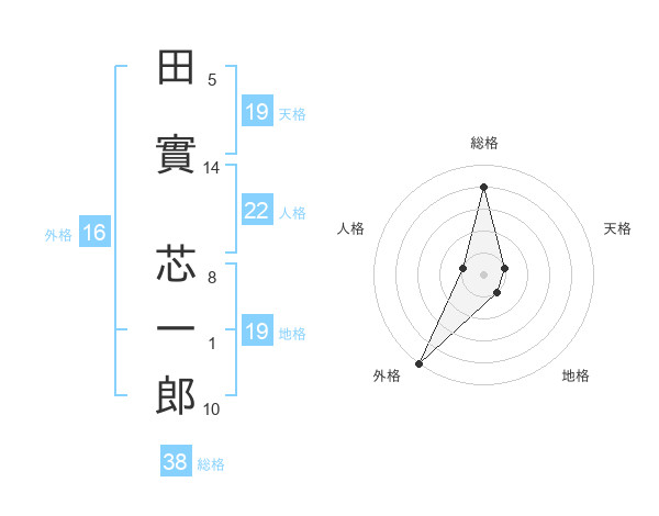 田實 芯一郎さんを姓名の画数から五運を鑑定
