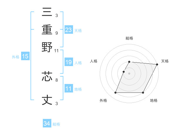 三重野 芯丈さんを姓名の画数から五運を鑑定