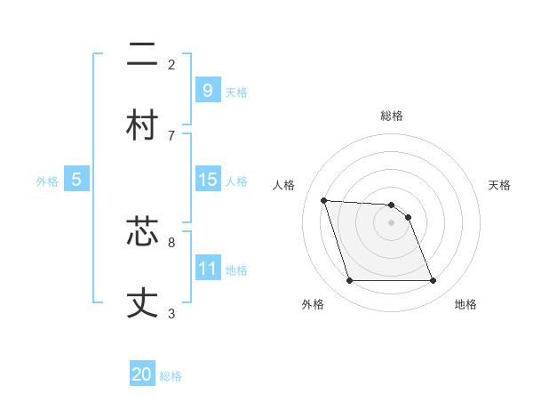 二村 芯丈さんを姓名の画数から五運を鑑定