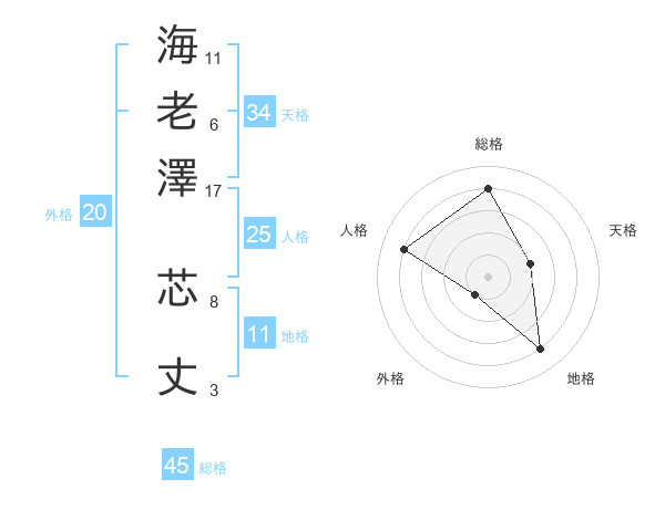 海老澤 芯丈さんの総格は45画の4点!
