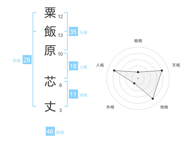 粟飯原 芯丈さんを姓名の画数から五運を鑑定