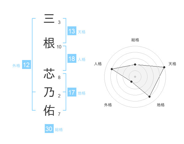 三根 芯乃佑さんを姓名の画数から五運を鑑定