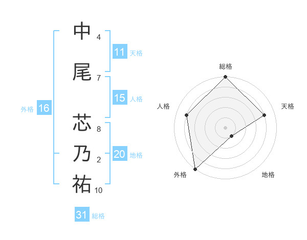 中尾 芯乃祐さんの総格は31画の5点!
