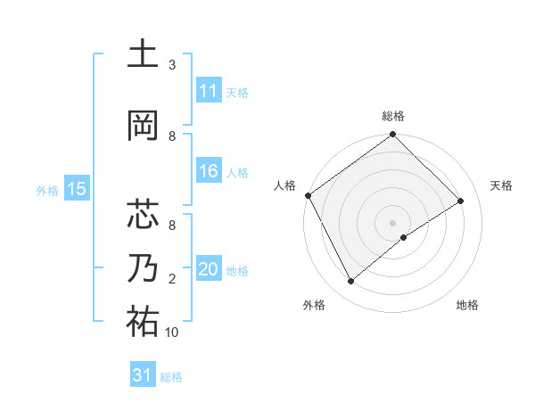 土岡 芯乃祐さんを姓名の画数から五運を鑑定