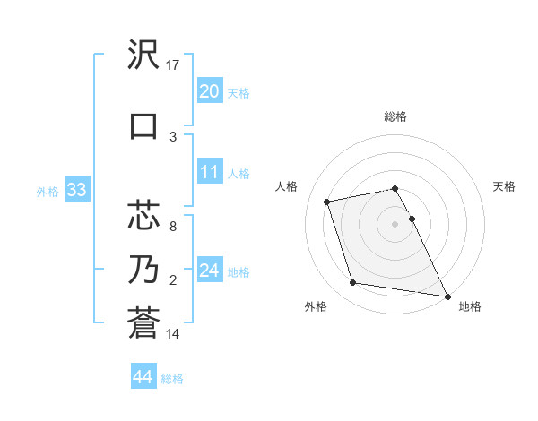 沢口 芯乃蒼さんを姓名の画数から五運を鑑定