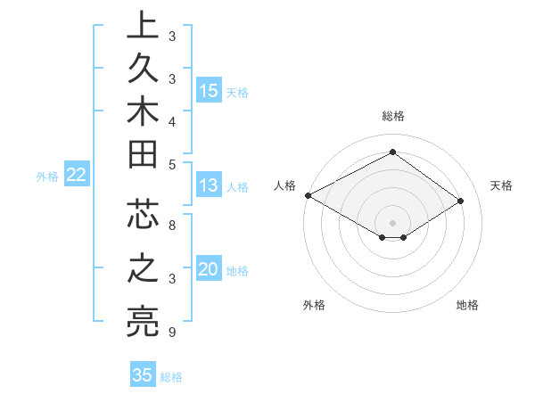 上久木田 芯之亮さんの総格は35画の4点!
