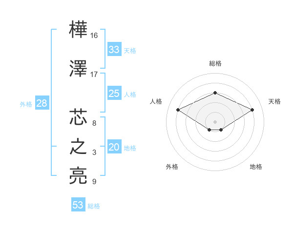樺澤 芯之亮さんを姓名の画数から五運を鑑定
