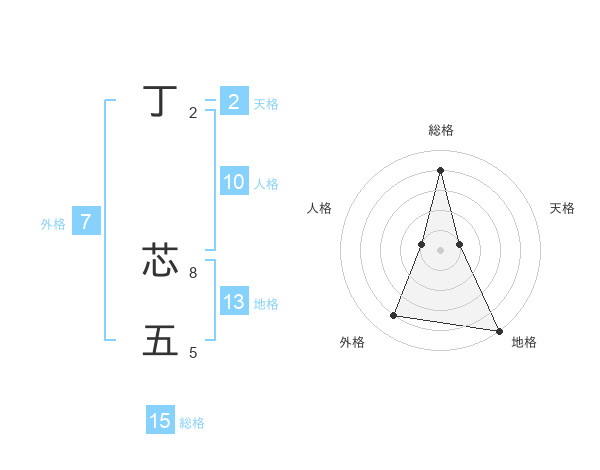 丁 芯五さんの総格は15画の4点!