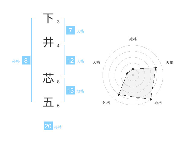 下井 芯五さんの総格は20画の1点!