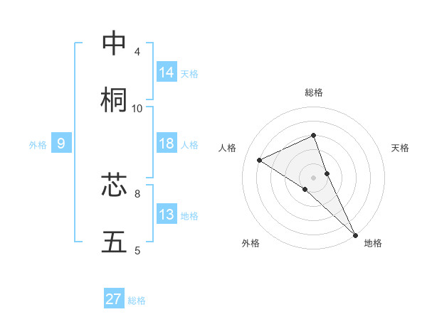 中桐 芯五さんの総格は27画の3点!