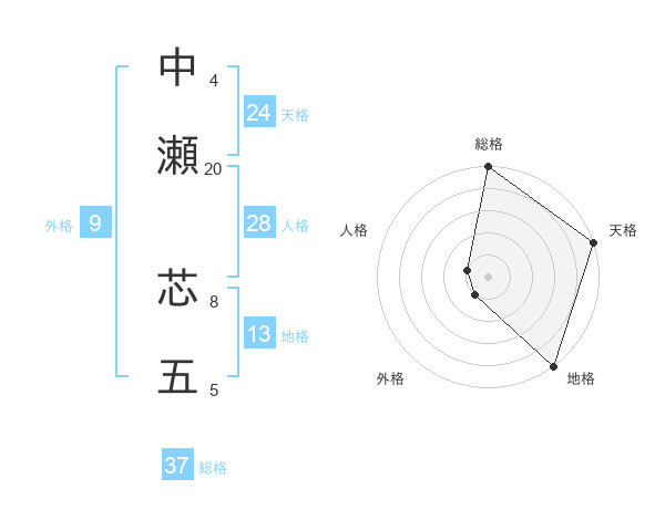 中瀬 芯五さんの総格は37画の5点!