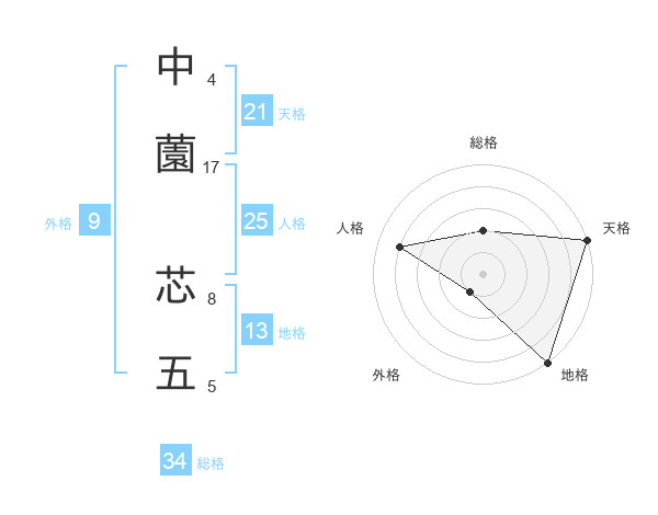 中薗 芯五さんの天格は21画の5点!