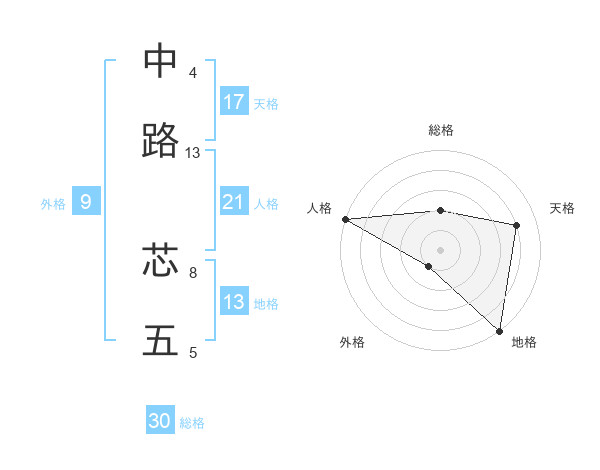 中路 芯五さんの地格は13画の5点!