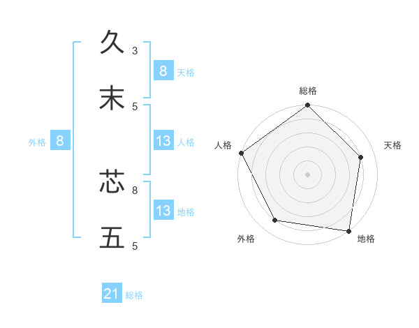 久末 芯五さんの総格は21画の5点!