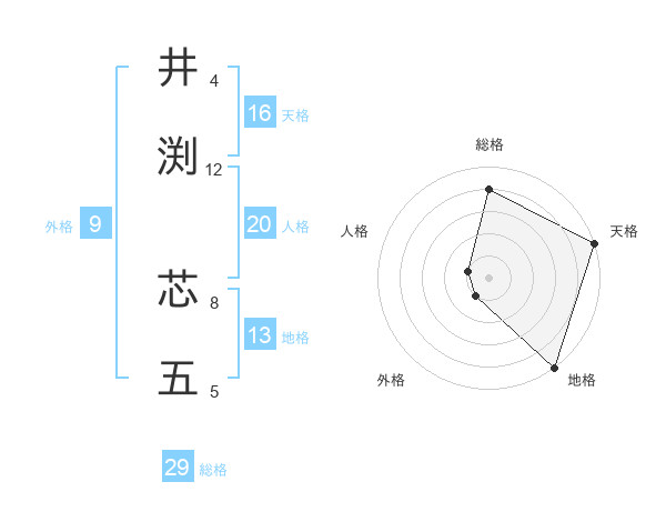 井渕 芯五さんの総格は29画の4点!