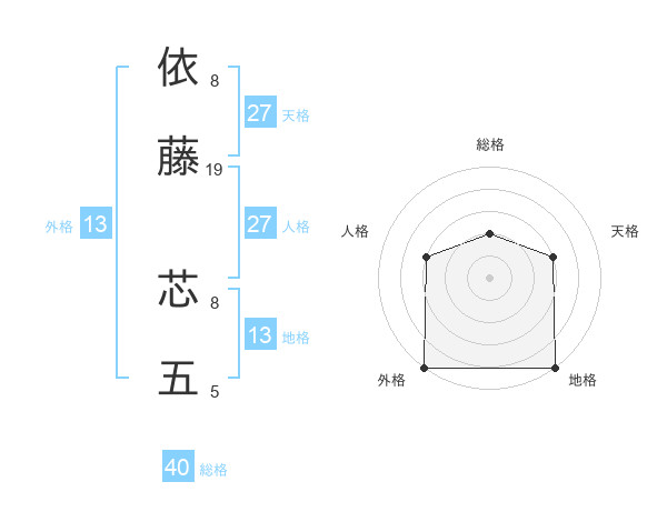 依藤 芯五さんの外格は13画の5点!