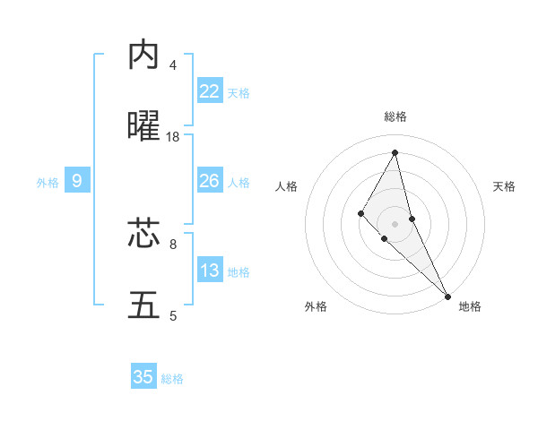 内曜 芯五さんを姓名の画数から五運を鑑定