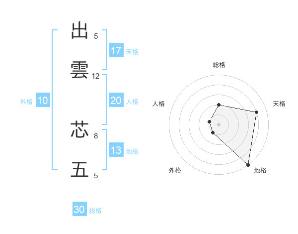 出雲 芯五さんの総格は30画の2点!