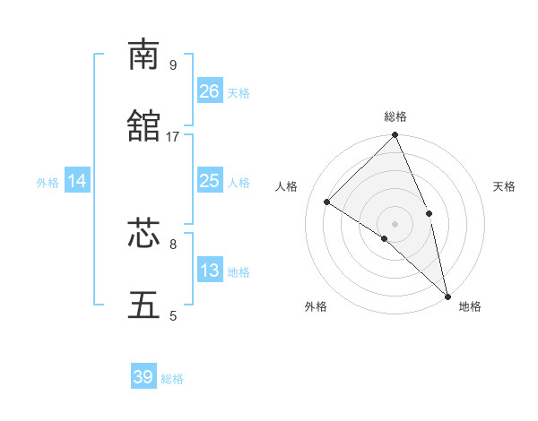 南舘 芯五さんを姓名の画数から五運を鑑定