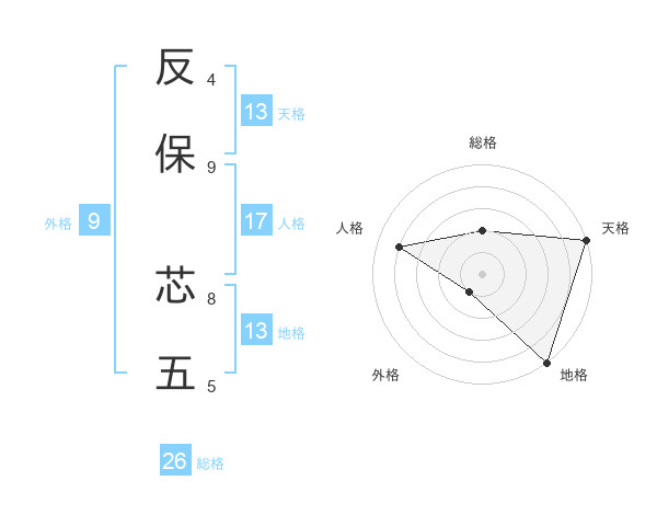 反保 芯五さんの天格は13画の5点!