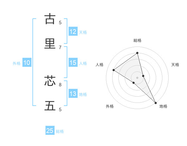 古里 芯五さんを姓名の画数から五運を鑑定